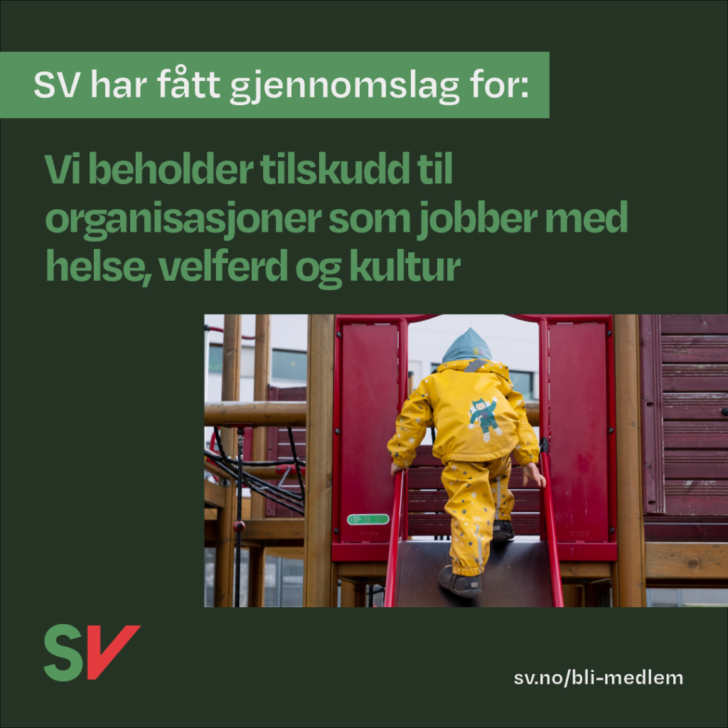 Det er mange frivillige organisasjonar i Tromsø som gjer ein fantastisk jobb. Anten det er matutdeling, støtte til overgrepsoffer eller tilbod til folk som fell utanfor på grunn av rus. Det var foreslått frå kommunedirektøren å redusere tilskotta til desse organisasjonane med ein fjerdedel. Det har det vore viktig for SV og samarbeidspartia i kommunen å gjere noko med.