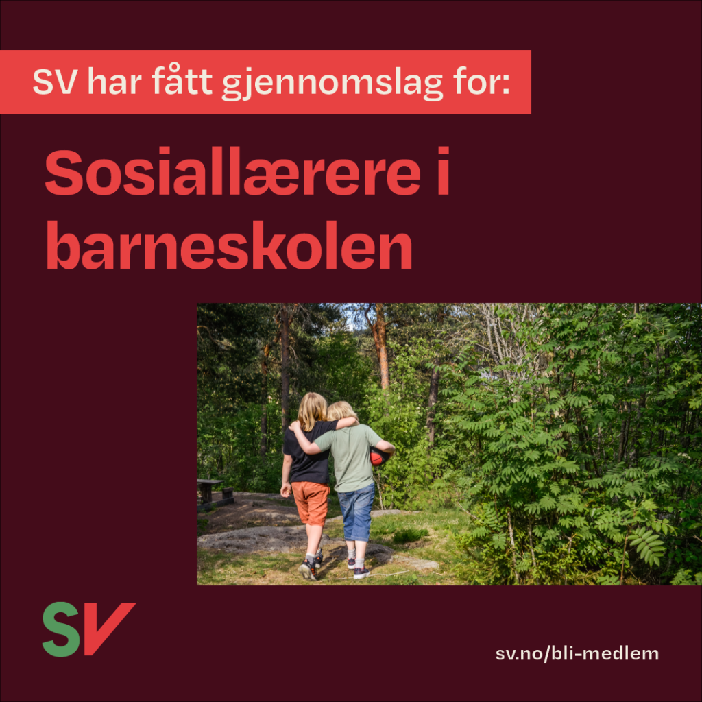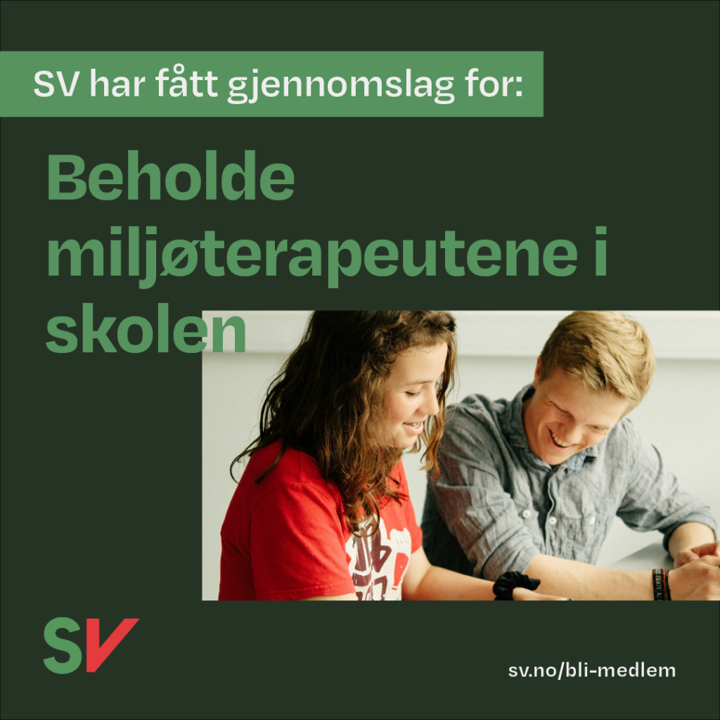 Få nyhetsbrev – Klikk herNoko av det aller viktigaste vi gjer er at vi sikrar både miljøterapeutane i ungdomsskolen og sosiallærarar i barneskolen. Dette er utruleg viktig for å styrke laget rundt elevane, støtte dei som slit mest på skolen og for å avlaste lærarane. Eg synst Lisa Eidissen sa det godt i eit innlegg i nordnorsk debatt: